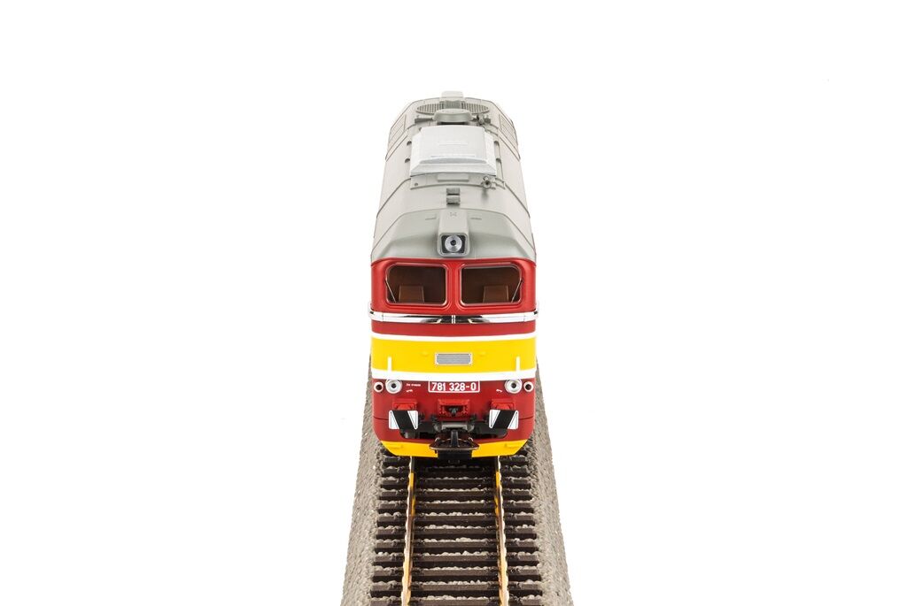 Introducing the new model for 2024, the BR 781 diesel locomotive from Czech Railways. The model has a solid die-cast frame, a powerful motor, and is equipped with digitally controlled cab lighting. The equipment also includes specially attached door handles and handrails and a detailed undercarriage. The built-in speaker is precisely matched to the type of locomotive. The model is factory-equipped with a PSD XP sound decoder with a large speaker, ensuring high-quality, realistic sound typical of this prototype.