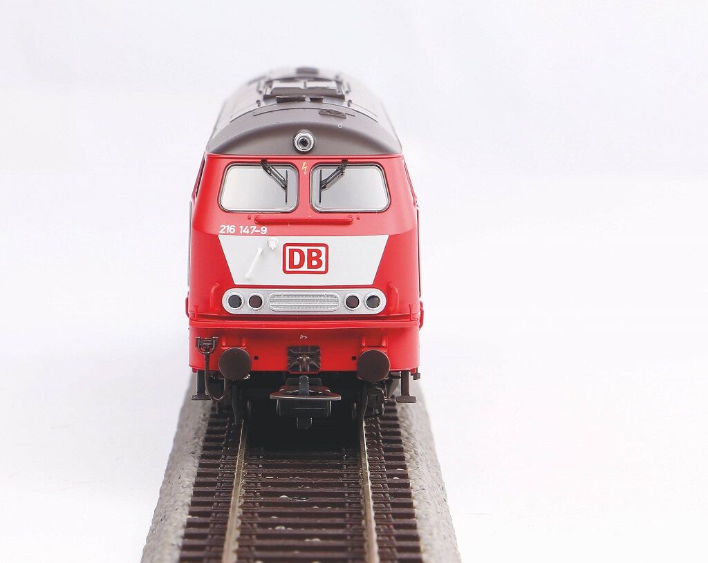 The legendary V 160 / 216 series locomotive was one of the most important diesel locomotives of the Deutsche Bundesbahn in the 1960s and 1970s. It was designed for express and fast trains on tracks without overhead lines and became a symbol of German railways at that time. PIKO presents a completely new design of this iconic locomotive, which fills a gap in the range and will delight all modelers of eras III to V. The model faithfully captures the typical appearance of the BR 216 DB AG locomotive in era V, i.e., from the 1990s. The locomotive is painted in oriental red with a light gray "face" (known as Latz). This variant appears for the first time without a snow plow, but with handles for shunting on the frame – exactly as in real life.