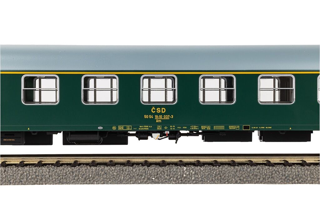 This detailed model of a ČSD 1st class Y-type carriage is new for 2025. The model features excellent running characteristics, precisely fitted windows with an unobstructed view of the interior, and a wealth of details.