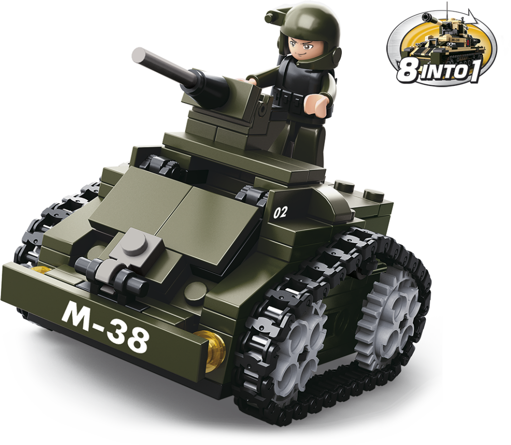 Miniature military vehicle kits from the Army 8into1 series, which can be assembled to create a large, complete model of a tank or armored vehicle. Innovative Sluban kits can be combined with similar kits from many other major manufacturers. They are made of high-quality, non-toxic, and durable ABS plastic. Each kit comes with assembly instructions and is packaged in a colorfully printed paper box.