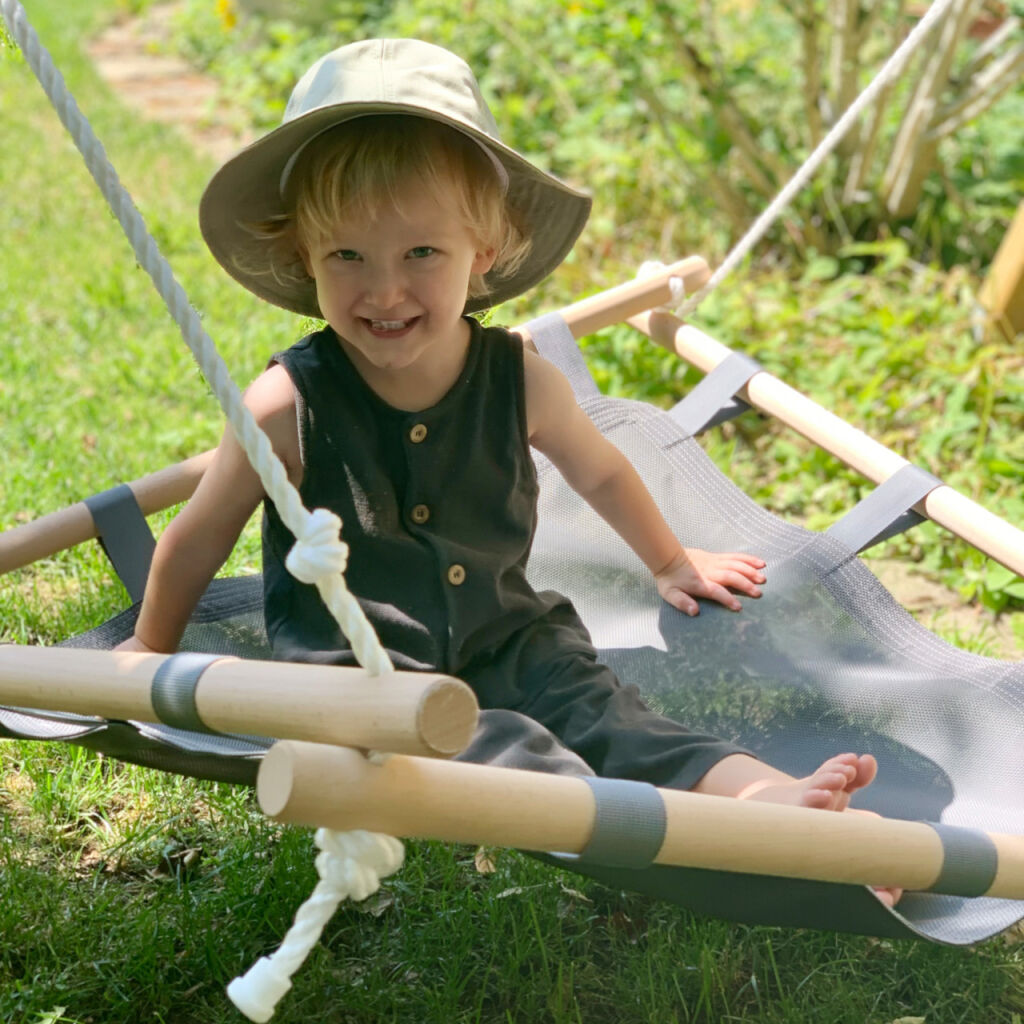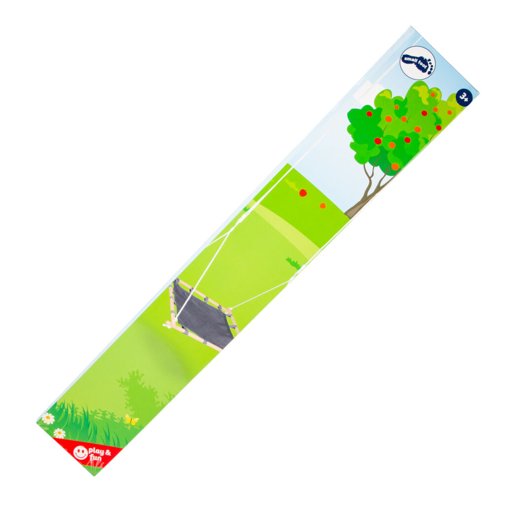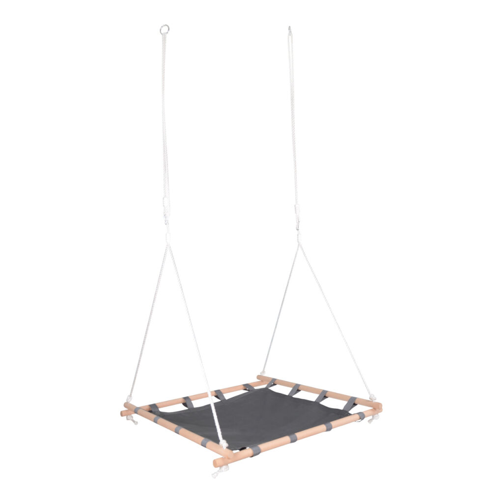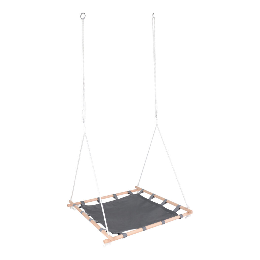 Fun with a square swing! Whether you swing in the garden or at home, this square swing with a modern design is sure to impress everyone with its sturdy frame made of natural wood. The large and comfortable swing is made of durable materials that are easy to clean. It offers space for several children to swing or relax at the same time. Environmentally friendly materials.